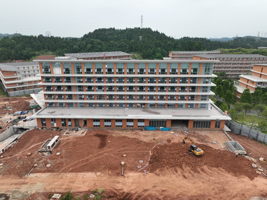 在学校国际交流中心,大楼主体结构以及二次结构施工已经全面完成,室内装饰装修施工正有序推进。据了解,该点位建筑面积12349.92平方米,在今年8月底竣工投运后,将进一步完善学校学术交流、教育培训、会务等功能。“我们正在加紧家具的生产、制作过程,争取7月底能够顺利进场进行安装,力保9月开校之前能够正常投入使用。”四川师范大学遂宁校区项目建设单位甲方代表石强说。
