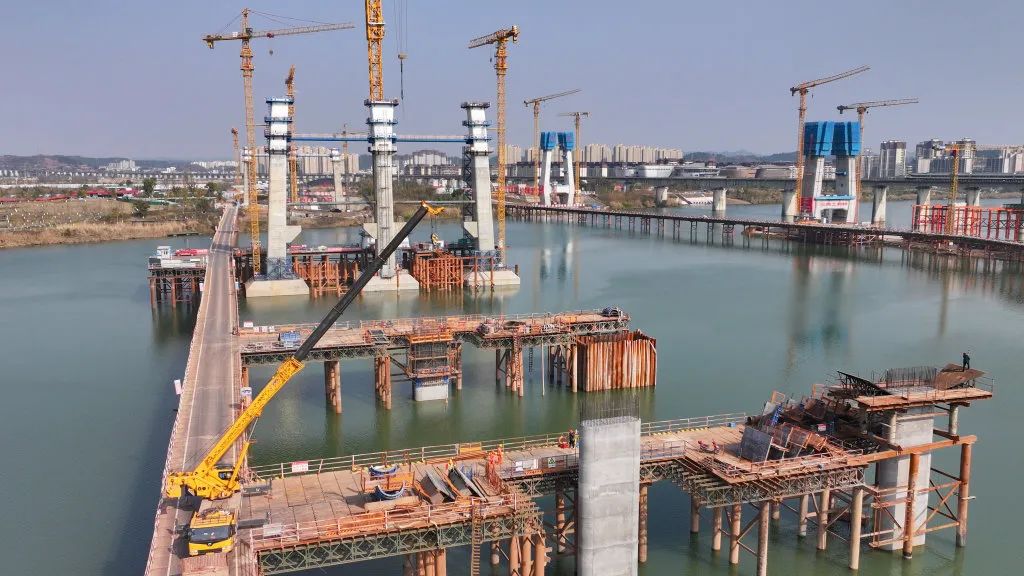 2月18日,涪江六桥项目建设现场,工人们正铆足劲加紧施工,确保项目进度。