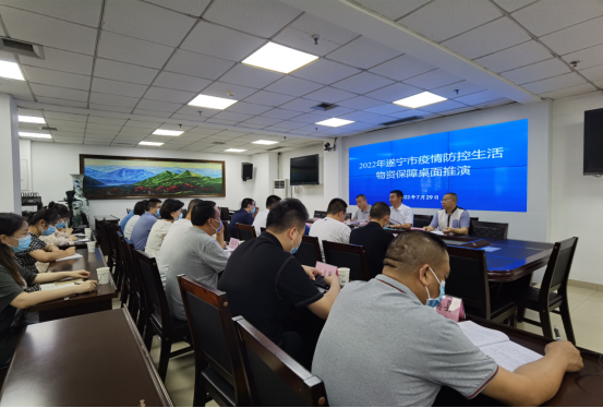 为检验全市生活物资保障应急处置水平,切实增强应战意识和实战能力,7月29日下午,市发展改革委牵头组织开展生活物资保障应急处置演练。市生活物资保障组成员单位、各县(市、区)及市直园区生活物资保障组、部分保供企业等现场参加推演。市生活物资保障组副组长、市发展改革委副主任赵文林主持会议。
