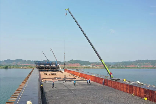 4月11日,记者在市城区圣平岛大桥(小河洲渡改桥)项目建设现场看到,所有机器开足马力,施工人员在严格落实疫情防控措施的前提下,实施钢筋安装作业、东引桥水中支架搭设等,各条生产线高速运转,现场忙碌而有序。据悉,该项目桥梁桩基、承台、墩柱下部构造已全部完成,主桥悬臂浇筑正有序实施,预计将于8月实现主跨合龙,年底具备交验条件。