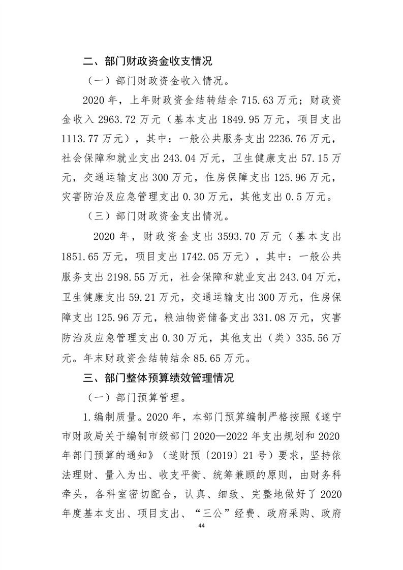 2020年度遂宁市发展和改革委员会部门决算(本级)