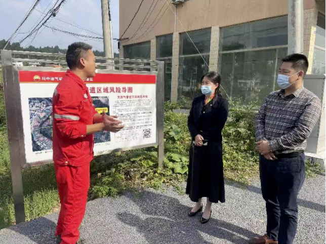 当天,肖霞首先来到大英县隆盛镇永隆街原油气长输管道高后果区现场,调研了解企业日常巡线、安全隐患整治等工作。她指出,中石油西南油气田川中油气矿要认真落实管道安全保护主体责任,地方人民政府要履好属地监管责任,扎实开展安全隐患排查整治,强化巡修巡检,做好重点区域监控,确保不留死角,保障全市油气长输管道安全运行。