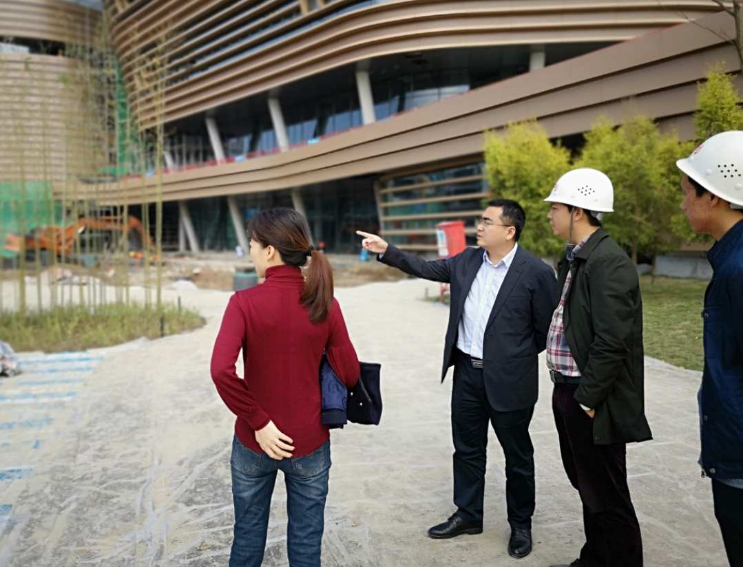 为深入贯彻市委七届六次全会精神,扎实做好2018年度重大决策部署事项,市重点办主任王海波带领市发改委社事科前往市宋瓷文化中心项目现场,督导项目的进度,协调项目存在的问题。目前,该项目进展如下:1、土建EPC部分已完成总体工程量的85%左右;2、主体结构、砌体结构于7月底之前全部完成;3、ABCD区外幕墙安装基本完成,EF区幕墙墙龙骨安装完成,进口复合铝板正在下料加工;4、室外工程:市政管网敷设完成,海绵城市施工完成,南、北、西侧室外铺装及园林景观施工完成约80%;5、人行天桥钢结构施工完成,桥面装饰装修、种植绿化基本完成;6、室内机电设备及管网安装完成约80%;7、屋面工程:屋面防水全部完成,种植土回填完成,屋面绿化完成约50%,人行步道结构全部完成,屋面栏杆完成85%;8、室内装修工程:地下车库耐磨地面基本施工完成,人防门安装完成;室内精装修墙面龙骨安装完成约80%,室内顶棚正在进行吊顶施工。