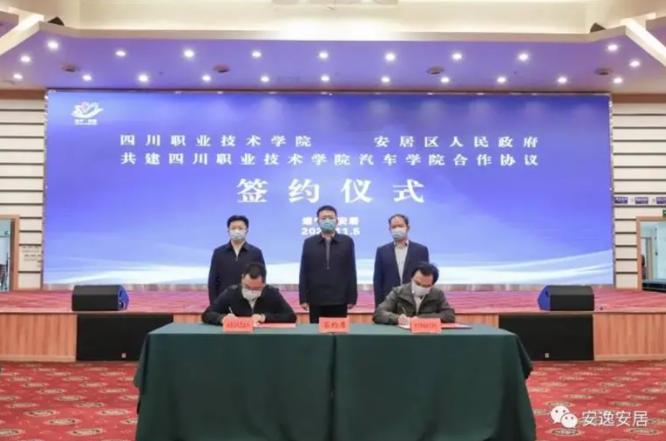 11月5日上午,安居区与四川职业技术学院举行共建四川职业技术学院汽车学院合作协议签约仪式。市委副书记景临见证签约仪式并讲话,市人大常委会副主任付勇主持仪式,四川职业技术学院党委书记张生出席。