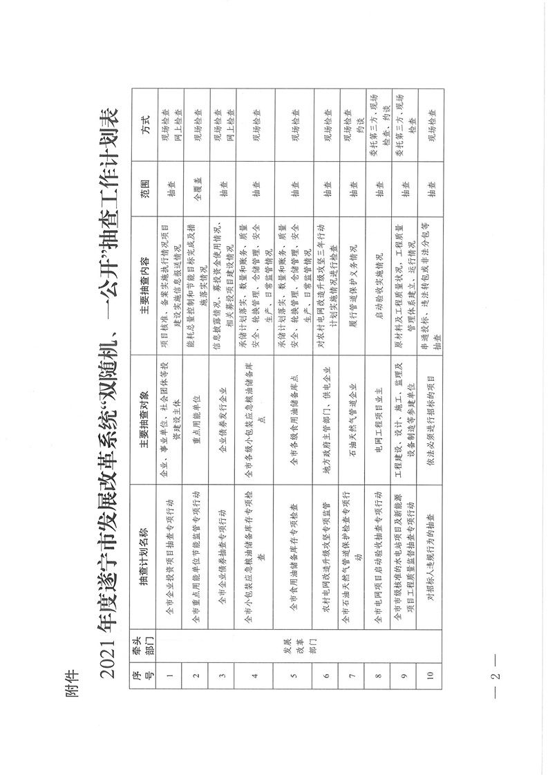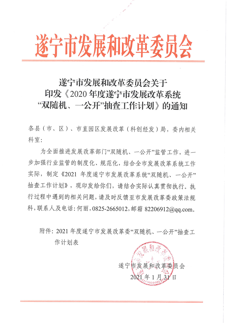 遂宁市发展和改革委员会关于印发《2021年度发展改革系统“双随机、一公开”抽查工作计划》的通知