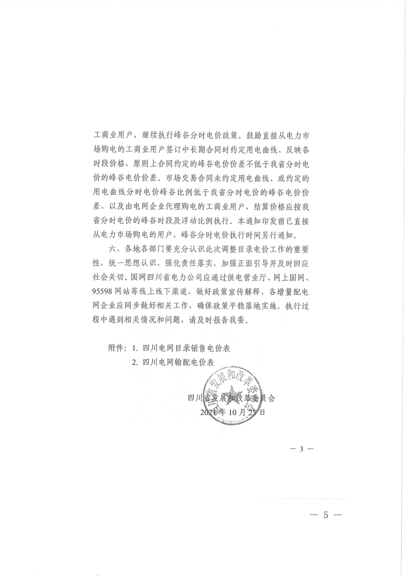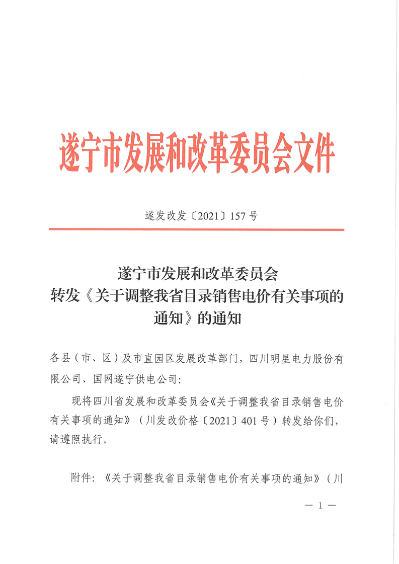 转发《 关于调整我省目录销售电价有关事项的通知》的通知