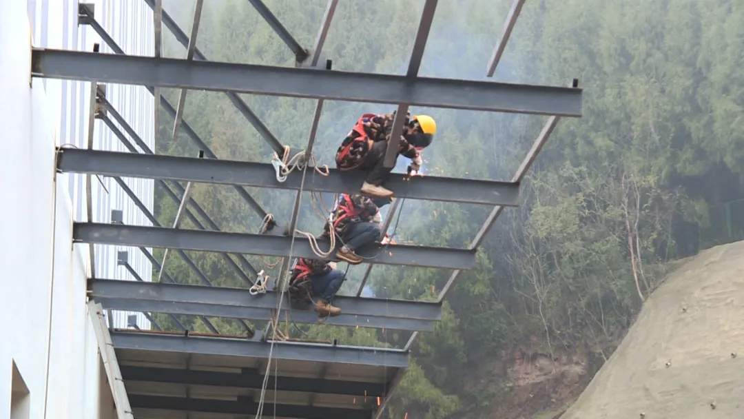 日前,记者来到位于船山区永兴镇的川渝(遂宁)新质农林产业融合示范园的项目建设现场,看到工人们正有序地分布在各作业面,加紧进行厂房的主体结构建设和钢结构焊接,以及外墙面装饰通风管道安装等施工。而冷链物流仓库建设目前已经完成了主体建设和外墙面的装饰装修,正在进行内部的消防设施安装和给排水设施的安装,预计将会在3月底完成建设。