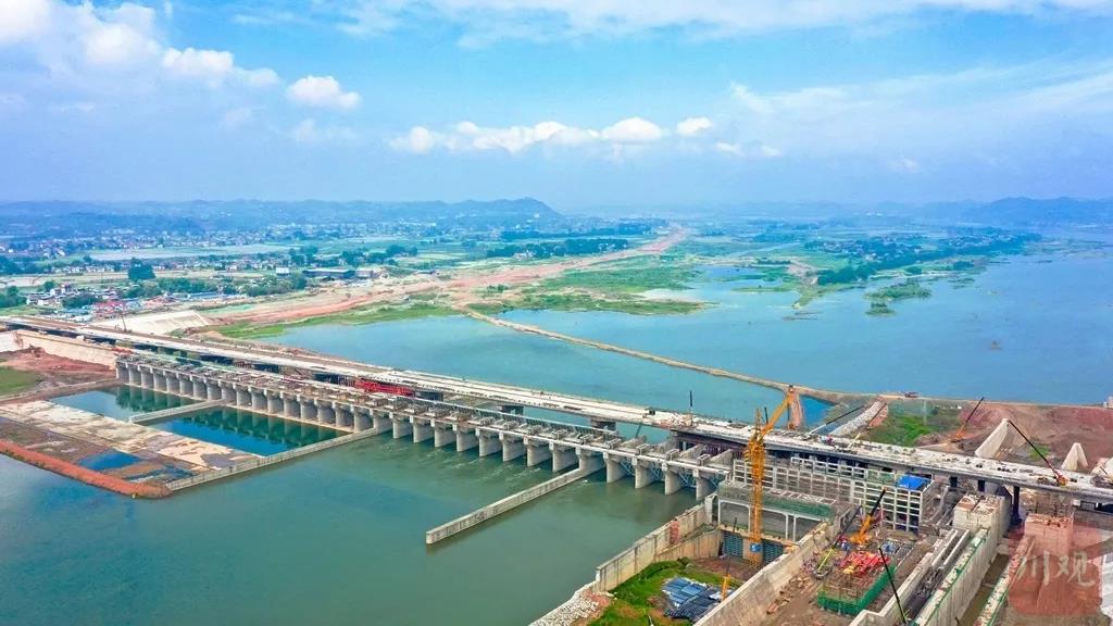 日前,记者在唐家渡电航暨凤台大桥项目现场看到,凤台大桥已实现合龙,横跨于涪江之上。大桥桥面上,塔吊林立、工程车辆往来穿梭,工人们正忙着进行桥面围栏及桥面附属工程施工。