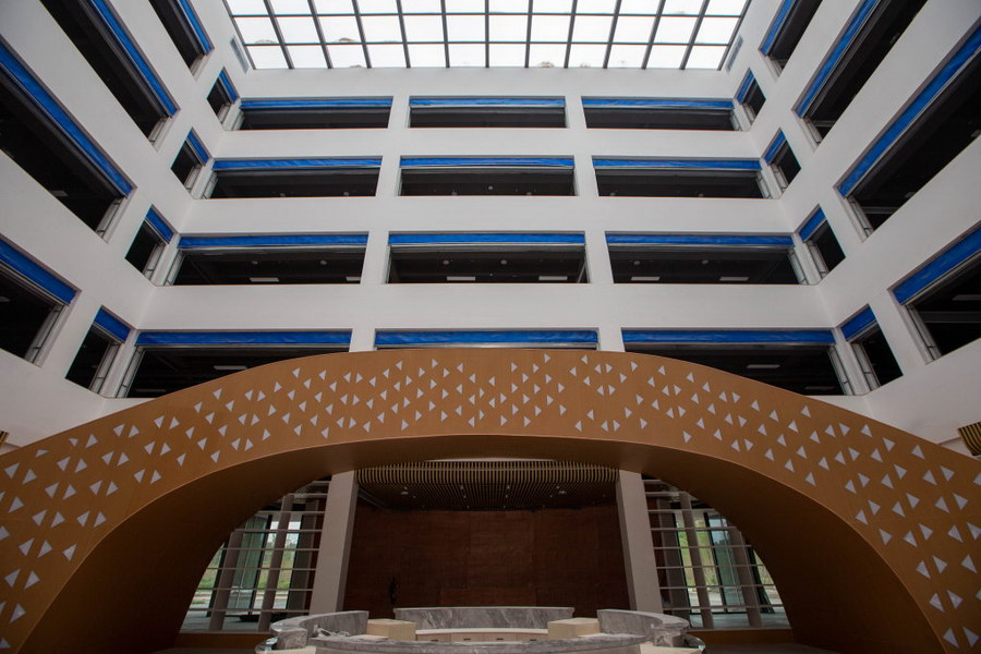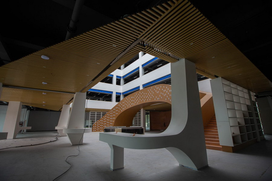 6月22日,端午小长假第一天,记者在遂宁能源职业学院看到,工人们正在进行室内装饰,据了解,遂宁能源职业学院将于9月迎接首批学生。