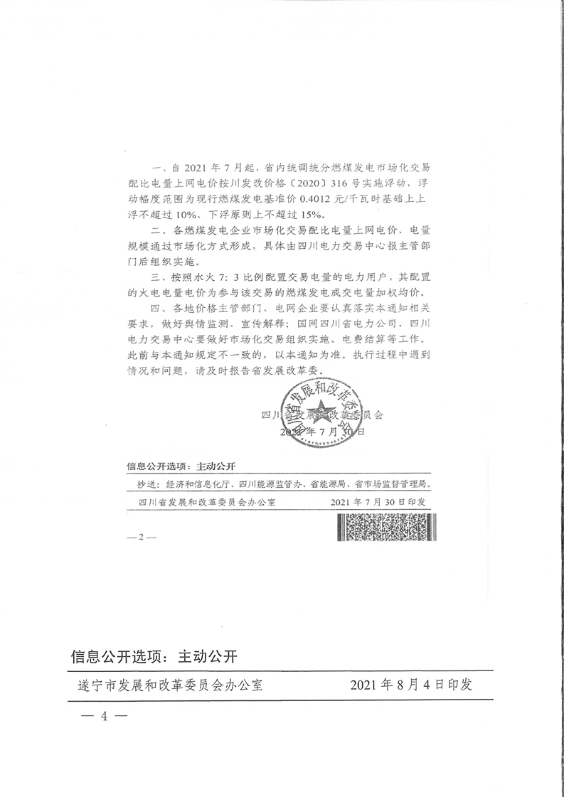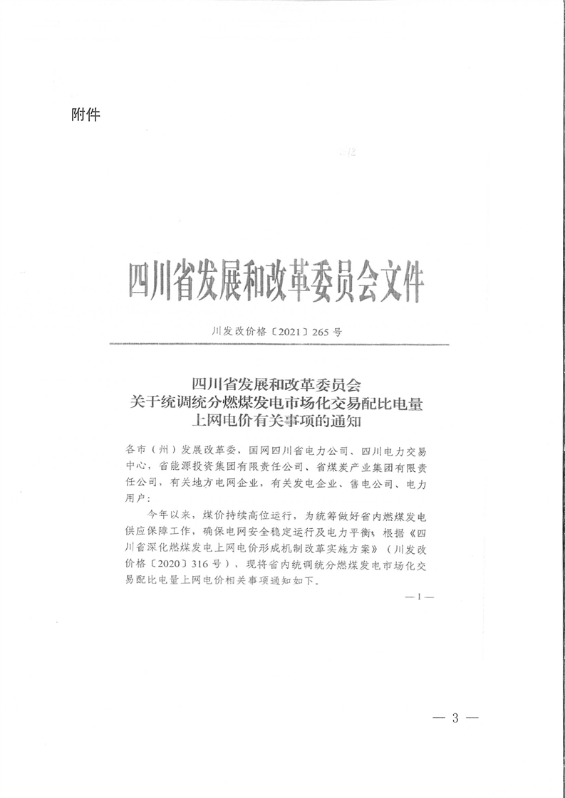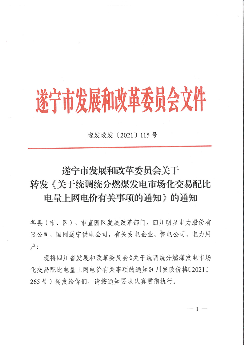转发《关于统调统分燃煤发电市场化交易配比电量上网电价有关事项的通知》的通知