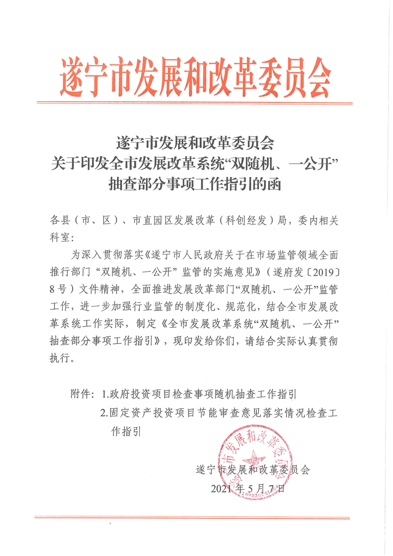 遂宁市发展和改革委员会关于印发全市发展改革系统“双随机、一公开”抽查工作指引的函