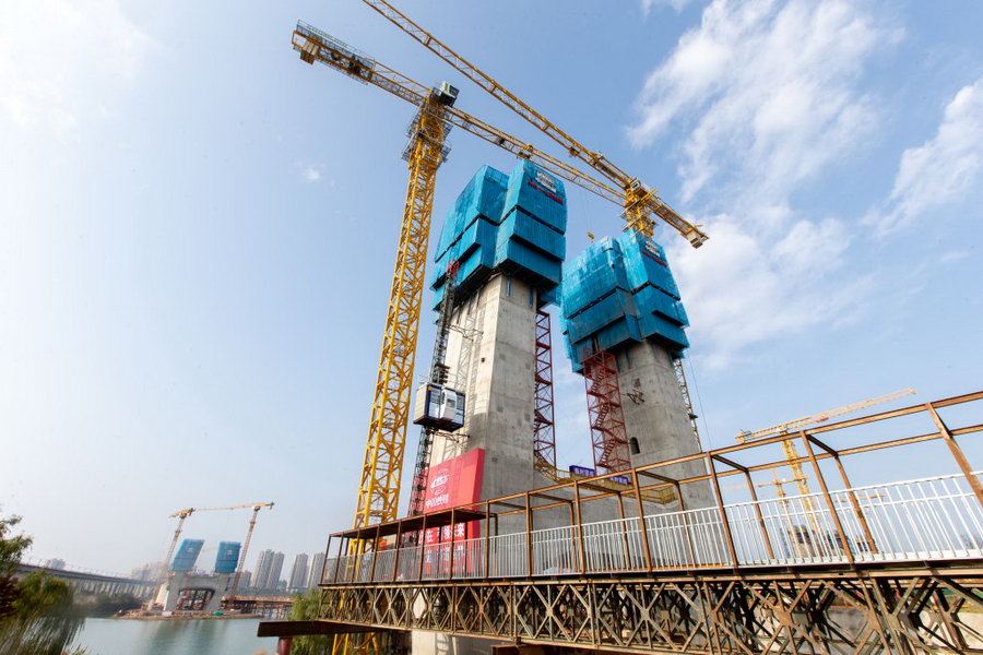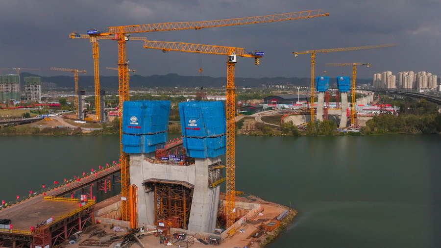 12月14日,位于成都至达州至万州高速铁路(简称“成达万高铁”)遂宁涪江特大桥建设现场,工人们正在对下横梁、悬灌梁等程序进行有序作业,加快完成年度目标建设。据了解,该桥梁全长5585.4米,全桥主要跨越涪江、渠河、中环路、芳州路、香林路、五彩缤纷路、新星路、渠河北路等道路。据悉,成达万高铁是我国“八纵八横”高铁网沿江通道的重要组成部分,正线全长477公里,设计时速350公里,也是过境遂宁的首条高速铁路。