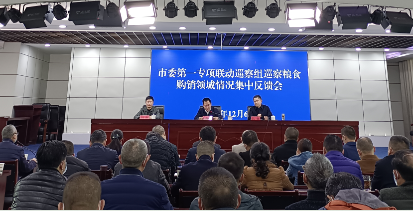 根据市委和市委巡察工作领导小组安排,2021年12月6日,市委第一专项联动巡察组巡察粮食购销领域情况集中反馈会召开。市委常委、市政府常务副市长杜海洋出席会议并讲话。会上,市委第一专项联动巡察组组长胡忠对市发展改革委党组、市财政局党组、市国资委党委、市市场监管局党组、市国丰粮油有限公司的主要问题进行了集中反馈,5个单位负责人分别作表态发言。市委巡察工作领导小组成员、市纪委副书记、市监委副主任韩麟主持会议。