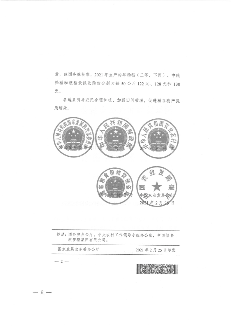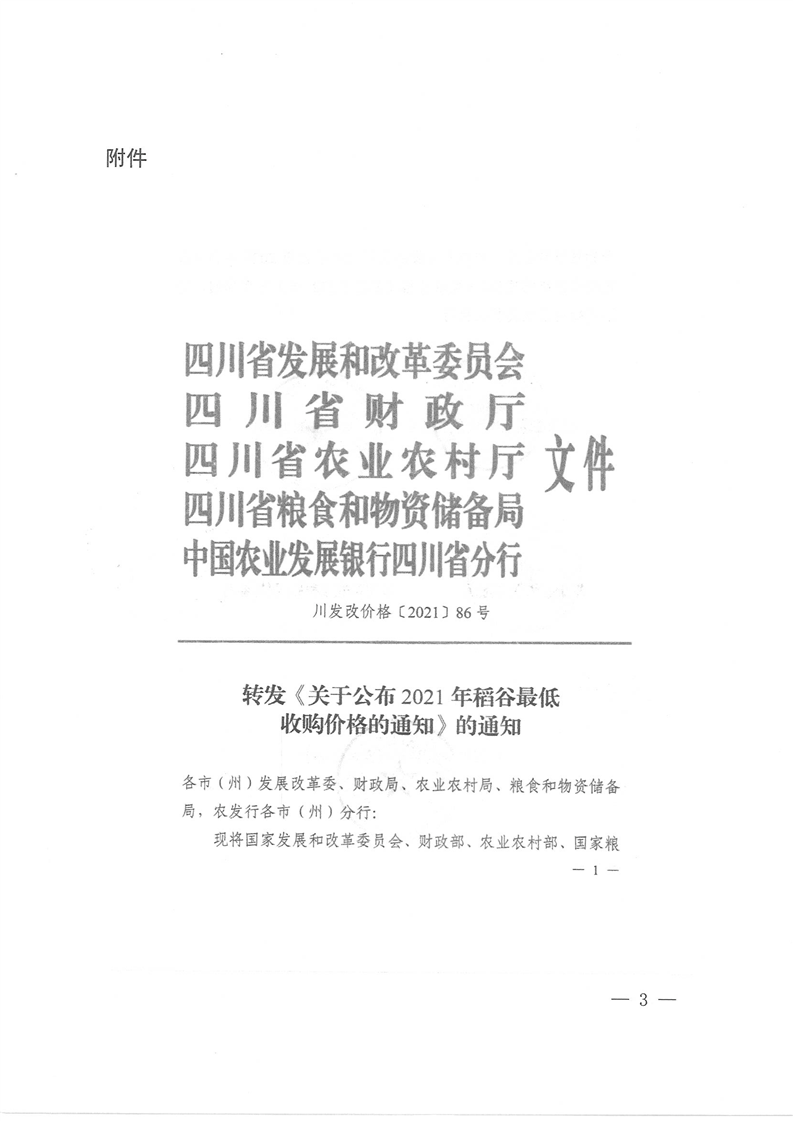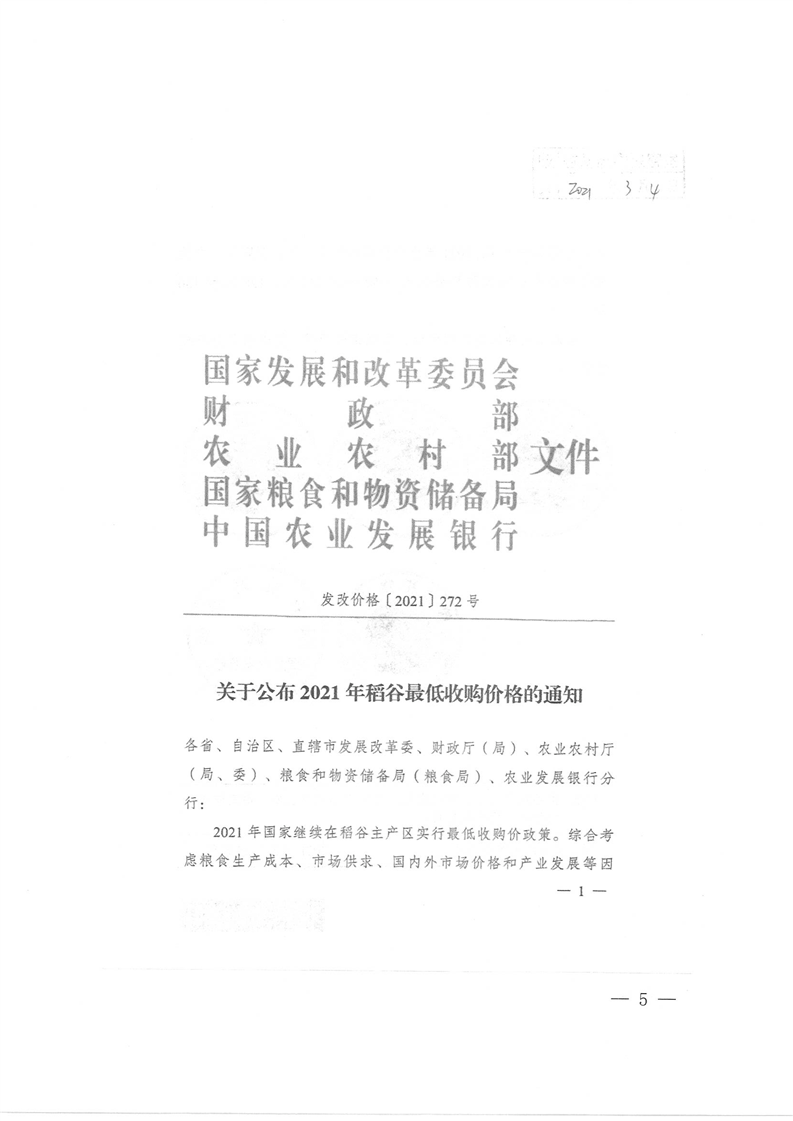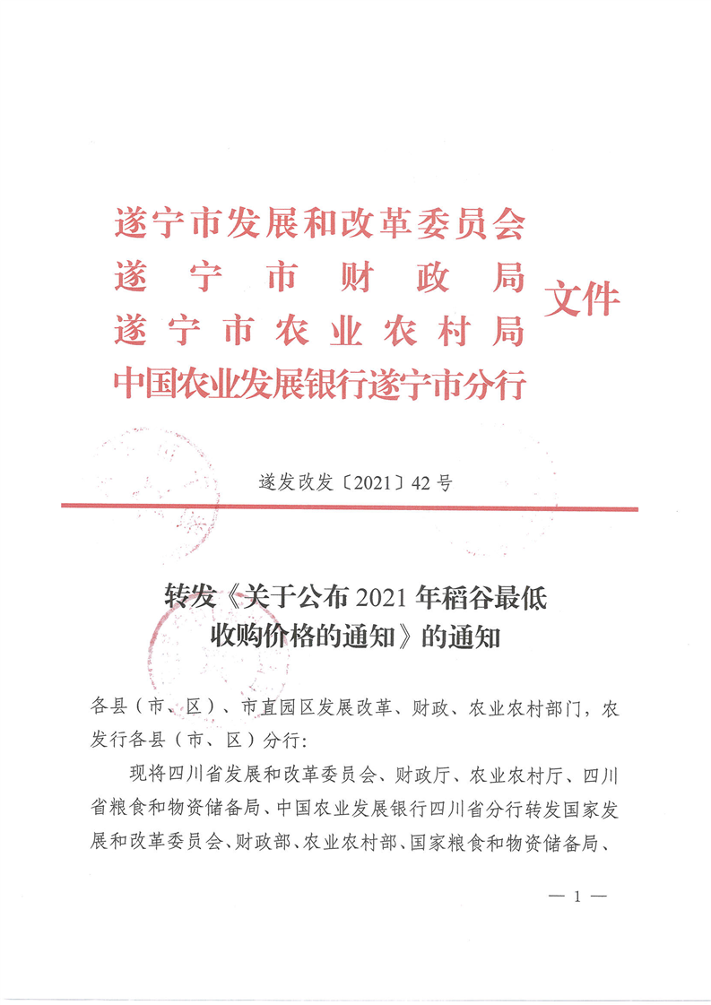 转发《关于公布2021年稻谷最低收购价格的通知》的通知