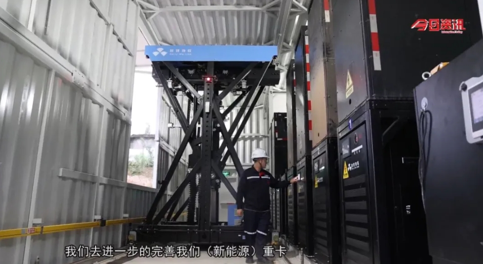 据了解,该新能源重卡换电站是由国家电投启源芯动力打造,共配备8个仓位和7块备用电池,能够适配市面上超83%换电重卡车型。“我们目前配备的是282度电的电池,单车续航里程大概在130-150公里,一天可以接受168次的一个补能需求。常规运营起来之后,每天可以进行50-70台车的补能服务。”上海启源芯动力科技有限公司西南大区总经理徐瑞璋介绍。