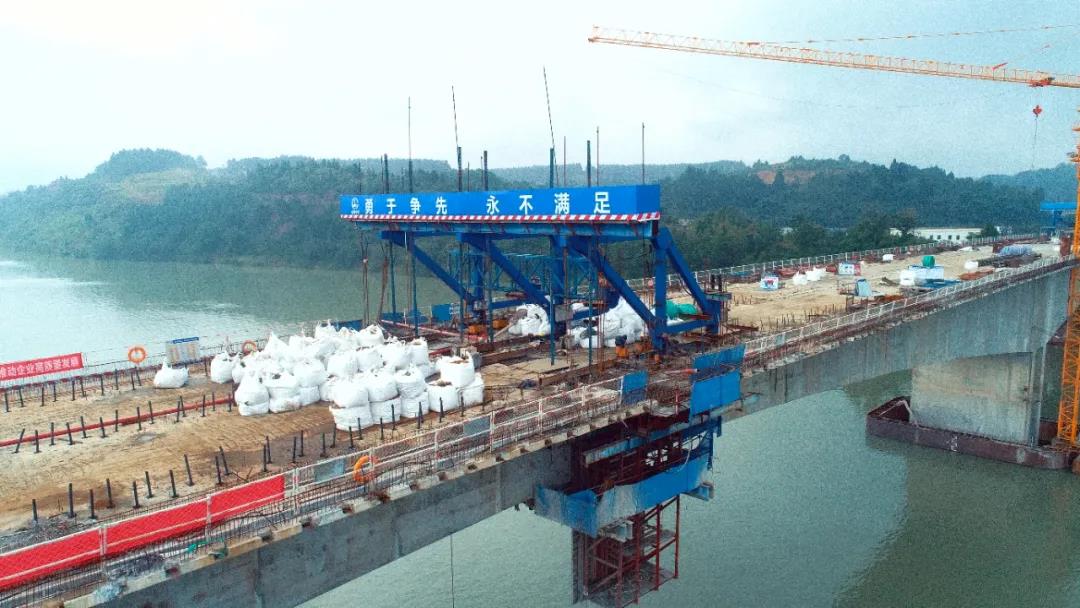 10月9日17时28分,遂宁田家渡大桥主桥中跨合龙段混凝土顺利浇筑,标志着该桥主体工程全部完工,正式进入附属工程施工阶段,建成、通车进入倒计时。