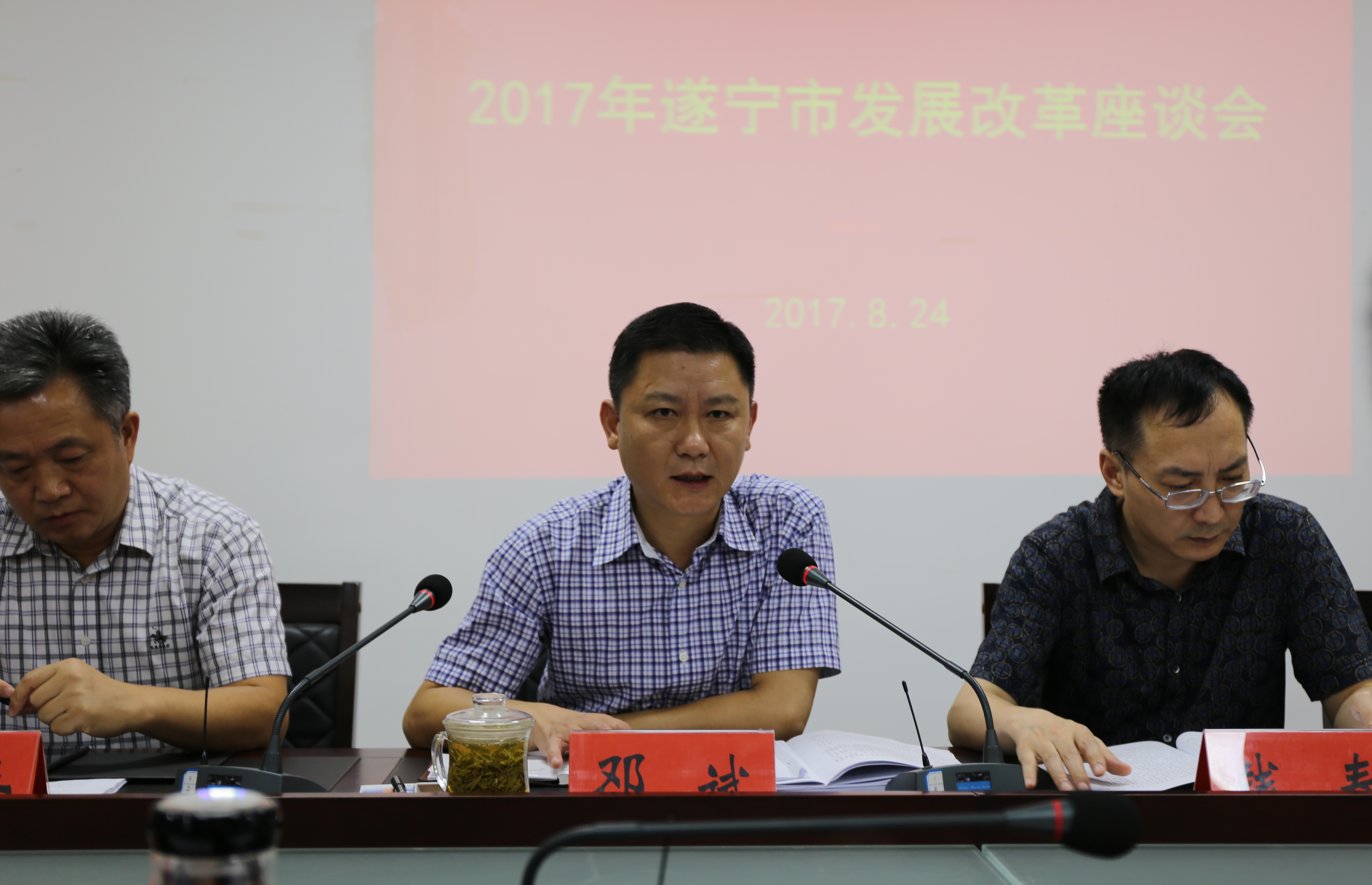 8月24日,市发改委组织召开了2017年全市发展改革系统座谈会。会议由市发改委党组成员、副主任李海同志主持,委党组书记、主任邓斌同志总结上半年发展和改革工作,安排部署下半年重点工作。各区县、园区发改局党组成员及市发改委各科室负责人参加了会议。